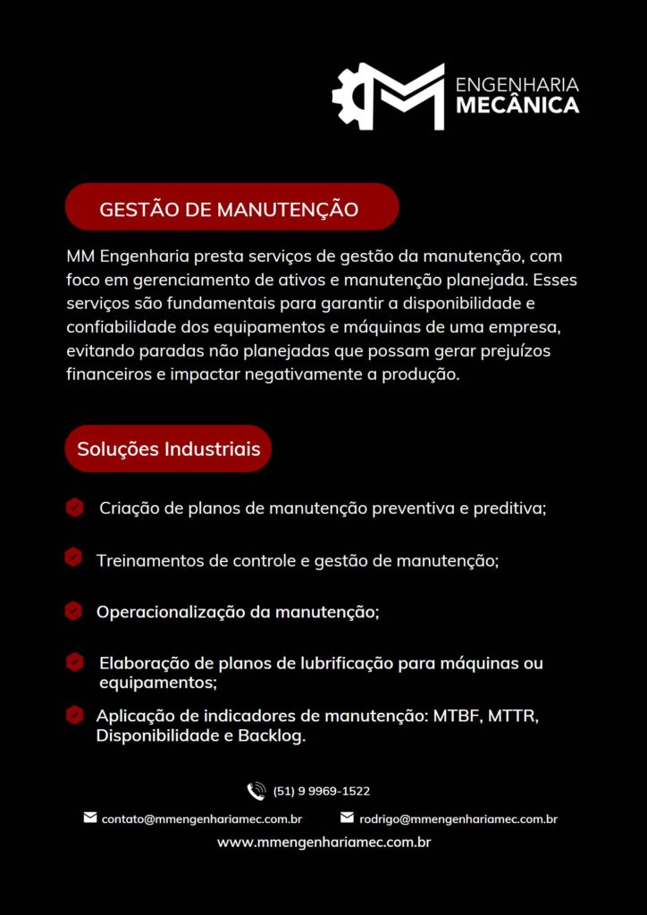 A MM ENGENHARIA PODE LHE OFERECER A SOLUÇÃO PARA O GERENCIMENTO DAS MANUTENÇÕES PLANEJADAS DE SUA EMPRESA, COM AS SEGUINTES FERRAMENTAS: